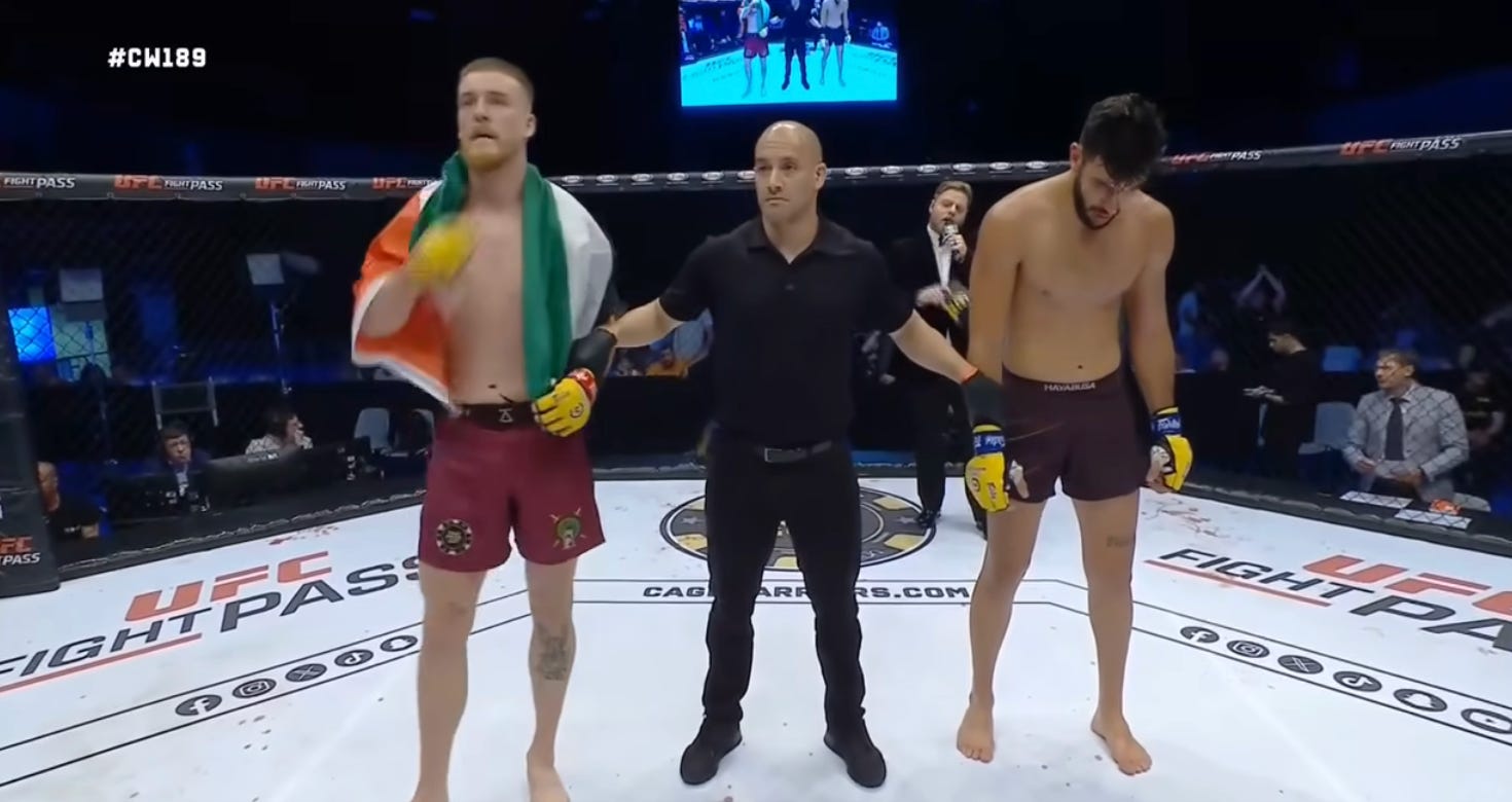 Paddy McCorry, a 27-year-old fighter with a 6-1 professional record and a stint on The Ultimate Fighter, defeated Israel’s Shuki Farage during Saturday night’s Cage Warriors 189 event in Rome, Italy. The event was streamed on the UFC Fight Pass streaming service, with footage from the fight reshared across social media.