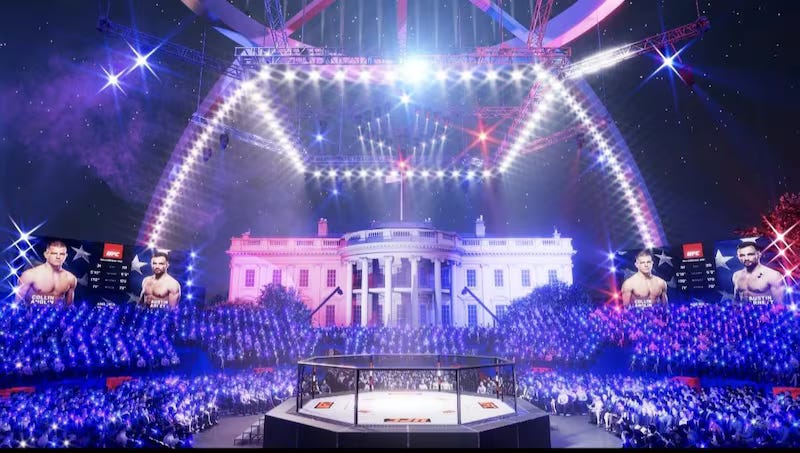 As I wrote in an article in the Guardian nearly six years ago, the UFC is the sports arm of Trump’s Maga regime. It helped put Trump back in the White House and remains a platform for his loyal base of supporters. The UFC White House event is the culmination of that union: a night of authoritarian theatre for a president whose second-term politics – from terrorizing immigrants to dropping bombs across three continents – boils down to a single governing principle: might is right.